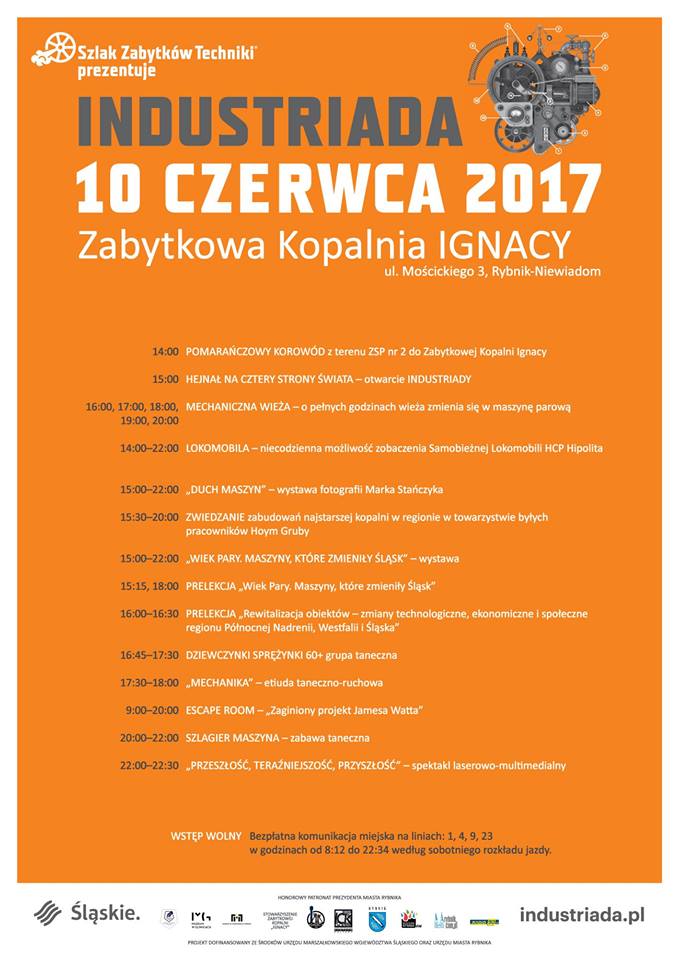 Serdecznie zapraszamy na niecodzienne wydarzenie jakim jest INDUSTRIADA odbywająca się obiektach tzw. Szlaku Zabytków Techniki. Jednym z takich obiektów Szlaku jest Zabytkowa Kopalnia IGNACY w Rybniku - Niewiadomiu. 10 czerwca w ramach wspomnianego wydarzenia wystąpią nasze rydułtowskie gwiazdy tańca, czyli "Dziewczynki Sprężynki" z Klubu Seniora "Sami Swoi". Nie może Cię tam zabraknąć więc zabierz swoją rodzinę i odwiedź piękne zabytkowe obiekty gdzie czeka na Ciebie wiele atrakcji :-)