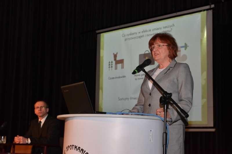 Następnie prezentację przedstawiła Pani Sylwia Jędrysik – Kierownik Referatu Ochrony Środowiska Urzędu Miasta Rydułtowy, która przedstawiła Informację na temat funkcjonowania nowego systemu gospodarowania odpadami komunalnymi.